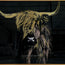 Glasbilder Schottisches Hochlandrind in gold mit kristallen und rahmen 120x80 cm (Premium)